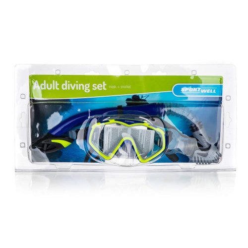 2dílna potápěčská sada pro dospělé SPORTWELL je skvělou pleveckou pomůckou pro šnorchlování a zábavu ve vodě. Součástí sady je: lícní maska a popruh ze silikonu, temperované sklo, dělený zorník, šnorchl - krytý vršek, proti pronikání vody, silikonový proplachovací ventil a náustek ze silikonu. Barva: modro-zelená.