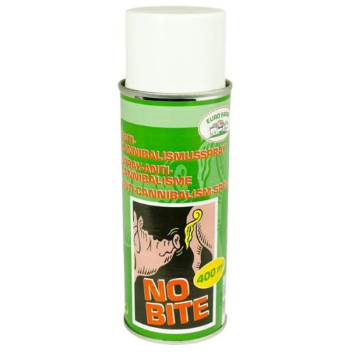 Sprej proti kanibalismu prasat a drůbeže NO BITE 400 ml. Sprej trvale mění pachový profil v okolí prasat nebo drůbeže a tím dokáže vytvořit uklidňující klima v kotcích nebo drůbežárně.