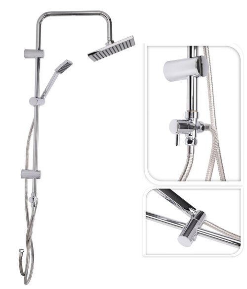 • kompletní sprchový set Bathroom Solutions- sada obsahuje sprchový sloup včetně hlavové a ruční sprchy, hadice a držáku- ruční sprcha s dlouhou ohebnou hadicí z nerezové oceli- velká komfortní hlavová sprcha s intenzivním dešťovým proudem- držák na sprchu s pohyblivým uchycením- přepínač mezi ruční a hlavovou sprchou- nerezová ocel s chromovaným povrchem nenáročným na údržbu- díky gumovým kanálkům se na povrchu neudržuje vodní kámen- velmi jednoduché připojení na existující baterii- univerzální upevňovací systém, set je vhodný ke všem standardním bateriím- sada obsahuje také instalační materiál pro upevnění + těsnění- rozměry:- hlavice hlavové sprchy: 20 x 20 cm- hlavice ruční sprchy: cca 4 x 22 cm- sprchová hadice k ruční sprše 150 cm- hadice k připojení na baterii 60 cm- výška setu: 80 cm