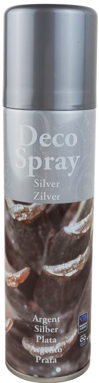 Stříbrný sprej je vhodný k dekoraci zejména vánočních předmětů: výkladů oken, jmelí, listů, vánočních stromků apod. Použití: zahřát na pokojovou teplotu, důkladně protřepat poté aplikovat ze vzdálenosti 30 - 40 cm na dekoravaný předmět. Po ukončení práce otočte nádobku dnem vzhůru a prostříkněte ventilek, aby se nezalepil. Nástřik je odstranitelný acetonovým ředidlem. Nepoužívat na plastové hmoty, lakované předměty a na nábytek. Balení: 150 ml.