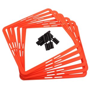 Sada šesti agility překážek se hodí pro sportovce všech sportovních odvětví. Díky této pomůcce můžete efektivně trénovat rychlost a koordinaci dolních i horních končetin. Sadu mohou využít také sportovní kluby všech věkových kategorií. Své uplatnění najde i ve školách a školkách. Čtverec o velikosti 40 x 40 cm má po každé straně speciální otvory pro propojení spojkami. Sestavit tak můžete agility dráhu různých rozměrů. Doplňte tuto pomůcku o další agility pomůcky a vytvořte tak komplexní agility dráhu. Vybrat si můžete i z několika barevných provedení.