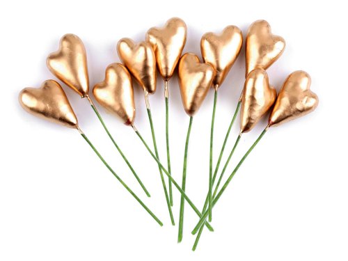 Dekorační srdíčka jsou připevněná k ohebnému floristickému drátku. Vyniknou zakomponovaná v květinových vazbách, aranžmá, věncích, ve svatebních či valentýnských dekoracích apod.