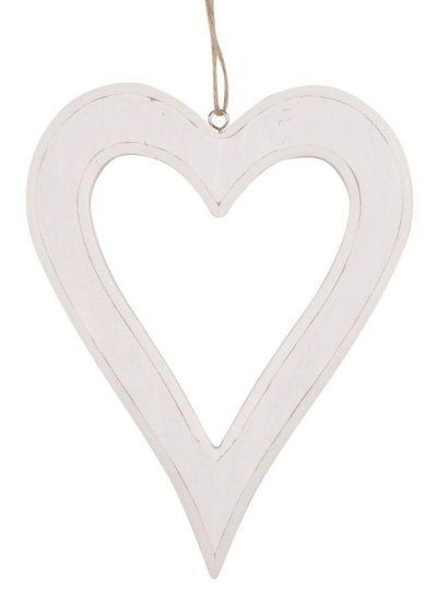 Srdíčko dřevěné bílé na zavěšení 19,5 cm
