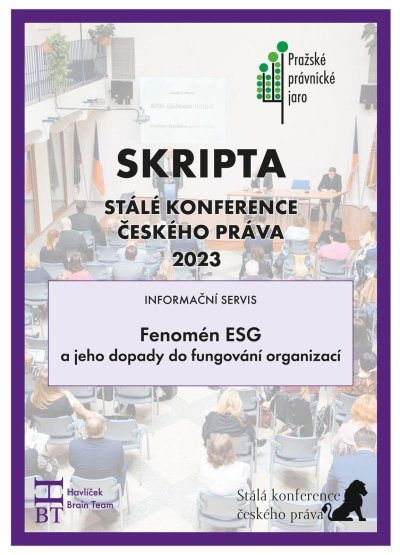 Skripta SKČP Fenomén ESG a jeho dopady do fungování organizací vám přináší referáty JUDr. Petra Michala, JUDr. Petra Šuka, JUDr. Ing. Lenky Dupákové, Ing. Radka Špicara, Taťány Plecháčkové, JUDr. Pavla Smutného, Mgr. Jana Sůry, Miroslava Holana, Mgr. Petra Bohumského, Petra Jedličky, Ing. Reneé Smyčkové, Ing. Jiřího Pavla, JUDr. Romana Fialy a Vladimíra Valenty, kteří se sešli, aby sdíleli své názory a zkušenosti s fenoménem ESG. ***** Skripta SKČP jsou projektem Stálé konference českého práva realizovaným od roku 2022. Jejich cílem je rozšiřovat myšlenky, které zaznívají na konferencích, sympoziích, kulatých stolech a dalších prezenčních akcích Stálé konference českého práva, i mimo přirozeně (zejména kapacitními důvody) omezený okruh účastníků, s nimiž se můžeme při těchto akcích reálně setkávat. Principem ediční řady Skripta SKČP je zaznamenat průběh jednotlivých akcí, zachovat autentický ráz přednesů a jen s nezbytnou mírou redakčních zásahů, představit nezkresleně a pokud možno v plném rozsahu příspěvky těch, kteří se aktivně účastní akcí jako referenti, koreferenti, startéři rozprav či diskutující.