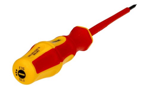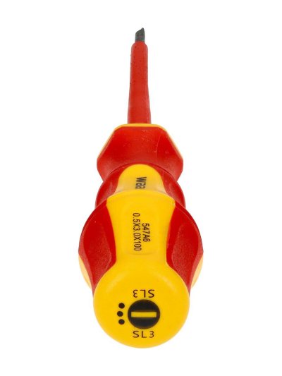 Šroubovák je vyroben z kvalitní CrV oceli, což zaručuje jeho pevnost a odolnost. Díky VDE certifikaci je zajištěno bezpečné použití při práci na elektrických zařízeních do 1000 V (1 kV). Plochý izolovaný šroubovák. Tento plochý elektrotechnický šroubovák je nástroj s plochou čepelí určený pro práci s elektrickými součástmi. Plochá čepel se používá k manipulaci a utahování šroubů s drážkovými otvory, tedy plochých šroubů. Šroubovák je vybaven izolovanou rukojetí z materiálu, který zajišťuje elektrickou izolaci a chrání uživatele před úrazem elektrickým proudem, přičemž umožňuje bezpečné uchopení. Elektrické šroubováky se široce používají při práci s různými elektrickými komponenty, jako jsou elektrické zásuvky, spínače, desky plošných spojů, kabely a další podobné součásti.