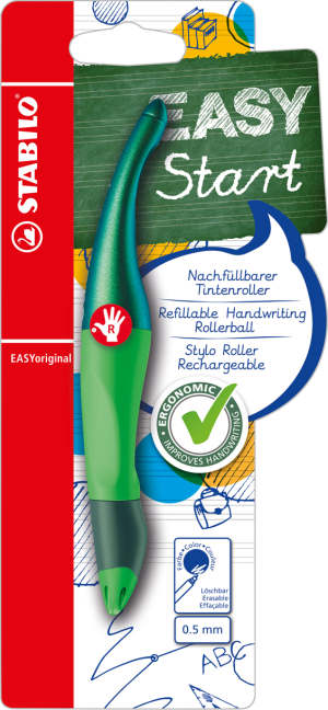 Ergonomický bombičkový roller Stabilo EASYoriginal pero pro praváky umožňuje školákům psaní bez škrábání na papíře.