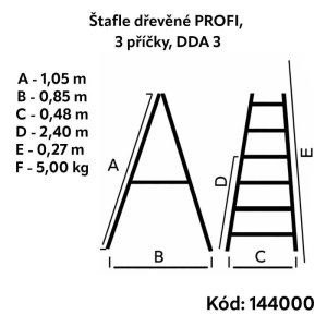 Štafle dřevěné PROFI, 3 příčky, L = 105 cm, ENPRO
