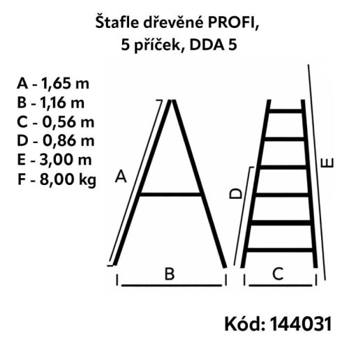 Štafle dřevěné PROFI, 5 příček, L = 165 cm, ENPRO