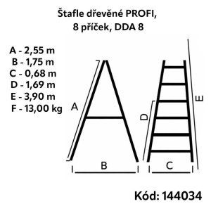 Štafle dřevěné PROFI, 8 příček, L = 255 cm, ENPRO