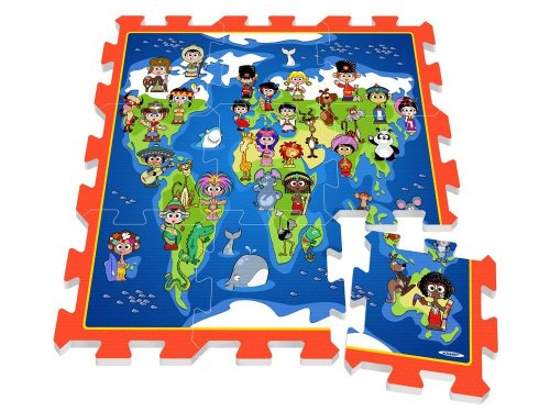 Pěnové puzzle STAMP vyrobené z příjemného zdravotně nezávadného materiálu. Z devíti dílků poskládejte svět a poznávejte s dětmi odlišnost lidí i zvířátek, která žijí na různých kontinentech.
