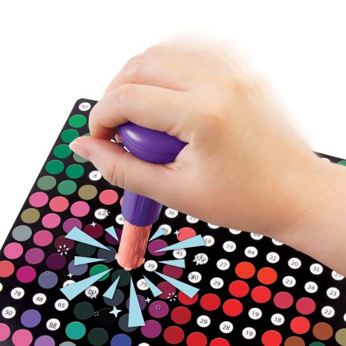 Užijte si uspokojující potěšení z vytváření vlastního tečkovaného plakátu! Podívejte se na razítko na číslo na papírové tečce a na plakátu najděte odpovídající číslo. Zarovnejte kruhy a razítko! Pokračujte v odhalování jednoho barevného tečkového uměleckého plakátu, který můžete zavěsit a užívat si. Každá sada obsahuje vše potřebné k odhalení uměleckého díla se zářícím drakem, včetně razítka, tečkovaných kazet a 600 teček. Zažijte větší spokojenost s každým razítkem a obdivujte odměňující výsledek. Stamp To Reveal™ Satisfying Dot Art je skvělý dárek pro trendy doplnění, ať už k narozeninám, svátku nebo jen tak. Ideální pro věk 6+. Sbírejte je všechny!