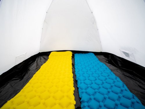 Dvouplášťové provedení ve tvaru kupole je ideální i do deštivého počasí. PE podlážka odolá vodě do 5 000 mm vodního sloupce a podlepené švy vodě ve výši 3 000 mm.