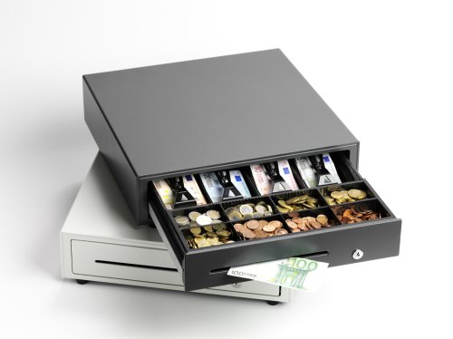 Kombinace přihrádek na hotovost: 4 na bankovky pomocí klapky a 8 na