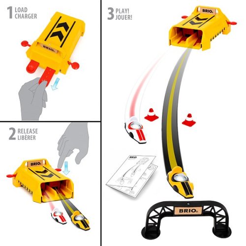 Vystřelte jako blesk ze startovací rampy Roll Racing. Postavte autíčka na místo, natáhněte startovací zařízení a vyrazte! Stiskněte tlačítka a sledujte, jak auta vyletí vpřed. Vyhněte se dopravním kuželům na podlaze a zamiřte rovnou do cílové brány. Součástí sady jsou dvě autíčka edice Roll Racing – žluté s černými pruhy a bílé s červenými pruhy. Startovací rampa skvěle funguje samostatně nebo ji můžete připojit k 30550 Věži Roll Racing a užít si vzrušující soutěž. Rozměry balení: 12 x 25 x 16 cm. Věk: 3+