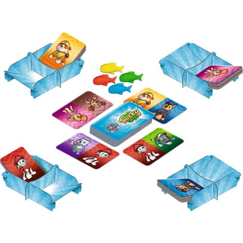 Balení obsahuje: 80 karet postav, 32 karet cílů, 4 podavače karet, 4 gumové ryby a pravidla.
