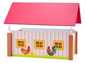 Tento krásný dřevěný statek potěší všechny malé milovníky zvířat a venkovského života. Sada obsahuje tři domky se snímatelnou střechou a hrací desku složenou ze dvou částí, které společně vytvářejí pestrou farmu plnou života. Ilustrace od české autorky s motivy zvířat, statku a přírody podněcují dětskou fantazii a vybízejí ke kreativnímu hraní. Domečky jsou vyrobeny z kvalitního dřeva a papíru, jemně zaoblené hrany a pestré barvy zaručují bezpečnost i dlouhou životnost hračky. Tato sada vytváří dokonalé prostředí pro hraní s figurkami. Rozměry domečku se střechou: 16,5 x 27 x 16 cm. Rozměry hrací plochy: 60 x 44 cm. Rozměry balení: 33 x 45 x 15 cm. Věk: 3+
