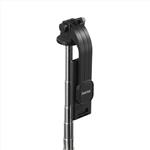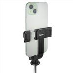 Držák na telefon s rychlou svorkou podporuje zařízení o šířce 6,2 až 9 cm a umožňuje snadné přepnutí mezi portrétním a krajinným režimem. Žebrované gumové podložky chrání smartphone a zajišťují pevný úchop. Rozkládací nohy s gumovými koncovkami zvyšují stabilitu na různých površích. Odnímatelná Bluetooth 5.3 spoušť s dosahem až 10 m umožňuje pohodlné fotografování bez nutnosti samospouště a bez použití aplikace.