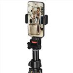 Teleskopický mechanismus umožňuje plynulé nastavení výšky od 41,5 cm ve složeném stavu až po 150 cm v plné výšce. Hliníková konstrukce zajišťuje odolnost při hmotnosti 1850 g a podporuje zatížení až 1000 g. Křížové vzpěry s gumovými nožkami poskytují pevný úchop na hladkých, kluzkých i nerovných površích. Otočný držák na smartphone s extrémní flexibilitou pro šířky 5,8 až 8,8 cm zajišťuje snadný přechod mezi portrétním a krajinným formátem. Svorka s pružinovým držákem a gumovou ochranou chrání povrch zařízení před poškrábáním. Ve složeném stavu lze stativ použít jako selfie monopod pro spontánní snímky.