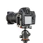 Délku držáku lze nastavit až do 128 mm pomocí 2 tuhých posuvných tyčí a šroubů z nerezové oceli, které si uživatel pomocí dodaného nástroje zafixuje na svém místě. Zadní hrana základny je zkosená pro lepší přístup k výklopnému displeji fotoaparátu. Svislá součást je obrobena tak, aby neblokovala porty fotoaparátu, a navíc může být namontována naopak, aby bylo možné připojit kabely z pravé nebo levé strany. Boční desku navíc velice snadno připevníte vzhůru nohama, čímž přetvoříte L-Bracket na kolébkový držák pro vaši kameru.