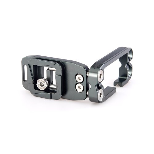 Délku držáku lze nastavit až do 113 mm pomocí 2 tuhých posuvných tyčí a šroubů z nerezové oceli, které si uživatel pomocí dodaného nástroje zafixuje na svém místě. Zadní hrana základny je zkosená pro lepší přístup k výklopnému displeji fotoaparátu. Svislá součást je obrobena tak, aby neblokovala porty fotoaparátu, a navíc může být namontována naopak, aby bylo možné připojit kabely z pravé nebo levé strany. Boční desku navíc velice snadno připevníte vzhůru nohama, čímž přetvoříte L-Bracket na kolébkový držák pro vaši kameru.
