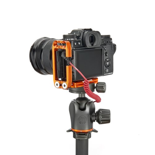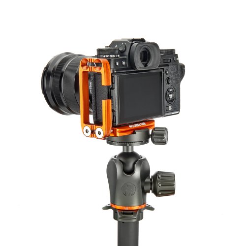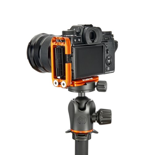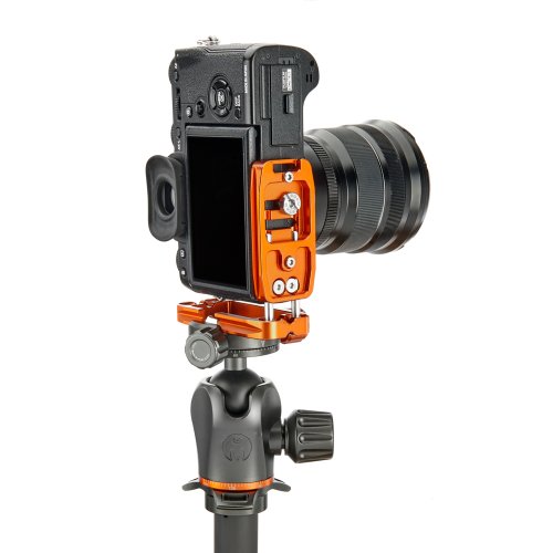 Délku držáku lze nastavit až do 113 mm pomocí 2 tuhých posuvných tyčí a šroubů z nerezové oceli, které si uživatel pomocí dodaného nástroje zafixuje na svém místě. Zadní hrana základny je zkosená pro lepší přístup k výklopnému displeji fotoaparátu. Svislá součást je obrobena tak, aby neblokovala porty fotoaparátu, a navíc může být namontována naopak, aby bylo možné připojit kabely z pravé nebo levé strany. Boční desku navíc velice snadno připevníte vzhůru nohama, čímž přetvoříte L-Bracket na kolébkový držák pro vaši kameru.