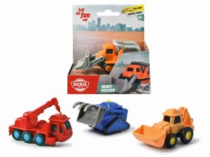 Stavební autíčko na zpětný chod, 4 druhy: sklápěč, bagr, jeřáb, buldozer. Velikost 10 cm.