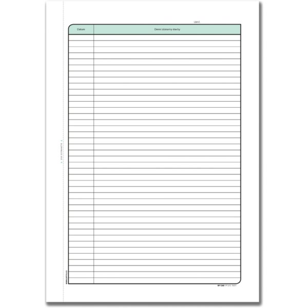 Obsahuje 3 x 15 číslovaných listů pro denní záznamy + 8 listů pro ostatní důležité záznamy
