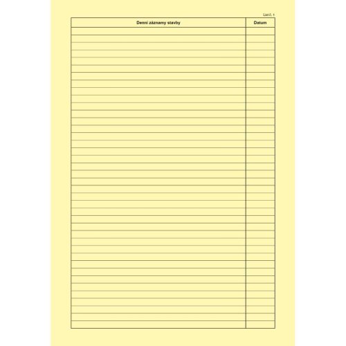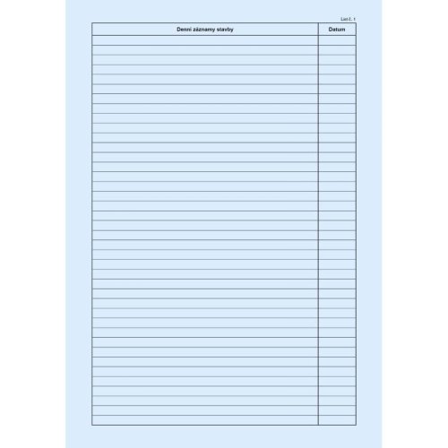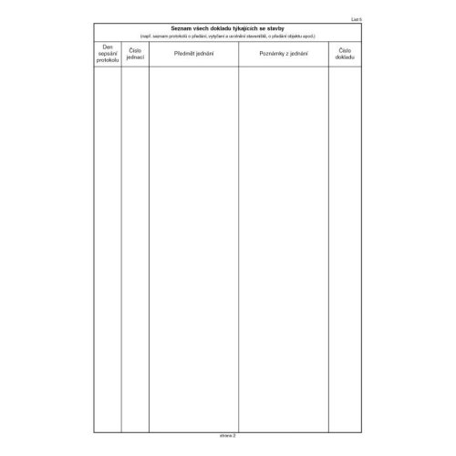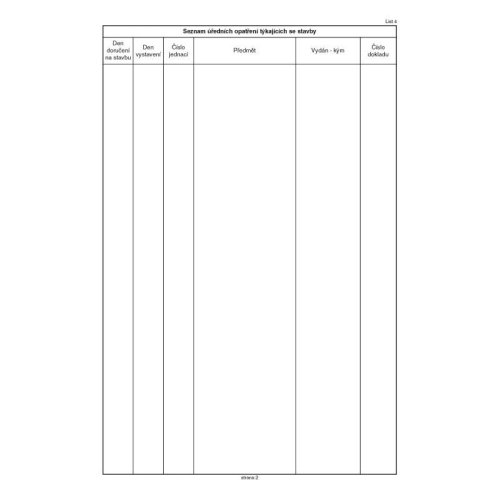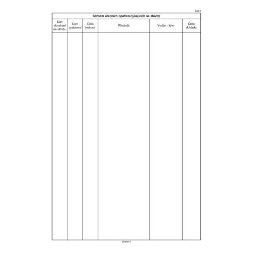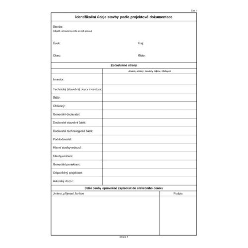 stavební deník tiskopis je vyroben ze samopropisujícího papír identifikační údaje stavby podle projektové dokumentace (list 1 přehled smluv, jejich změn a doplňků (list 2 lhůtník (list 3 seznam úředních …