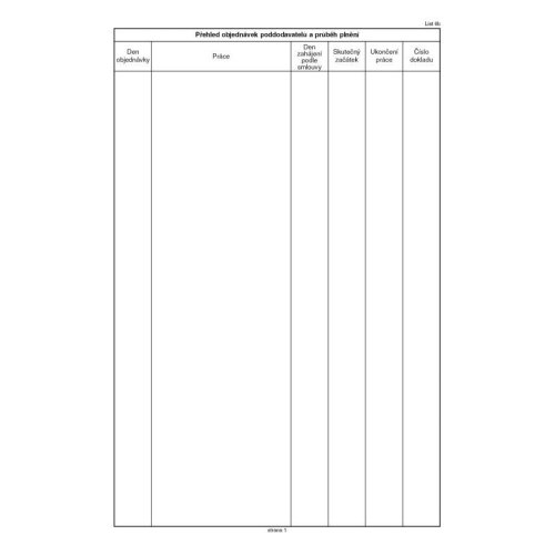 • přehled objednávek poddodavatelů a průběh plnění (list 6b