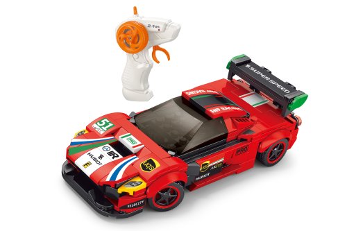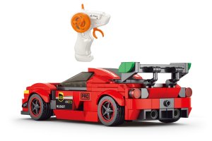 Stavebnice Auto červené RC na dálkové ovládání. 279 dílků. Rozměry 16,8x7,6x5 cm. Pistolový ovladač. Frekvence 2.4GHz. Bateriový pack 3.7V 350mAh Li-ion do auta součástí, 2xAA do ovladače nejsou součástí. USB kabel součástí. Přepínač ON/OFF na spodní straně auta a na boční straně ovladače. Obrázkový návod bez textu a nálepky součástí.