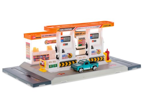 Stavebnice benzinová stanice 34x17 cm 24 ks s autem 7 cm kov volný chod a doplňky