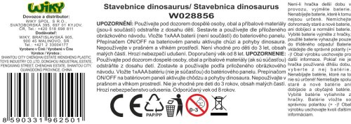 Stavebnice Dino model. Velikost 28 cm. Obrázkový návod. 1xAAA baterie není součástí balení.
