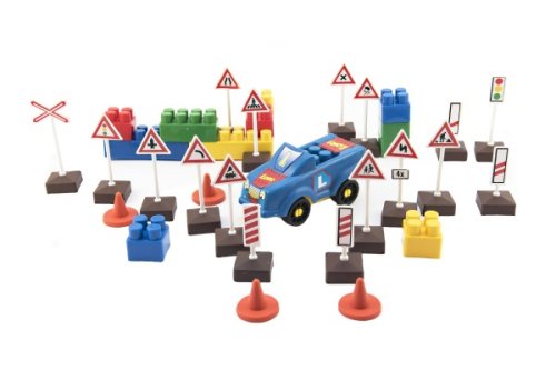 Dětská stavebnice LORI 11 autoškola a dopravní značky. Balení obsahuje 16ks dopravních značek, 2 kužely a auto. V krabici 22x13x6 cm. Vhodné od 3 let.