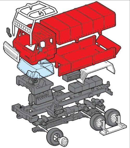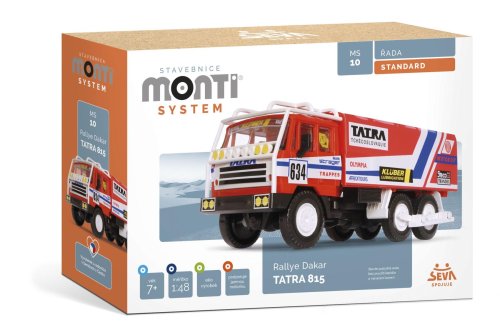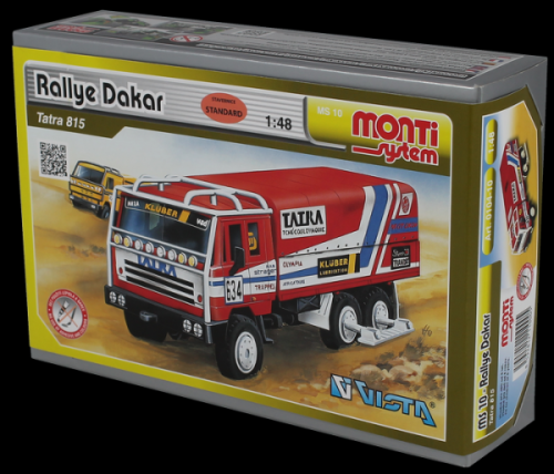 Model Tatra 815 MS 10 Rallye Dakar v měřítku 1:48 je vybavena na kolech stupačkami do písku pro přejezd pouště. Stavebnice patří do skupiny Standard.