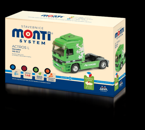 Postavte si model MS 53.2 - Actros L (zelený) bez použití lepidla a nanášení barev. Jednotlivé dílky jsou tak důmyslně vyrobeny, že s pomocí různých zacvakávacích zámků, úchytů a dalších pružných mechanismů sestavíte model bez jediné kapky lepidla. Vše do sebe jen zacvaknete nebo zasunete. Výsledkem je funkční model s úžasnými detaily, který je dokonalou replikou skutečné předlohy. Jednotlivé dílky jsou lisovány již barevné, takže nemusíte nic barvit. Rozměr krabice: 22 x 15 x 6 cm Vhodné od 8 let