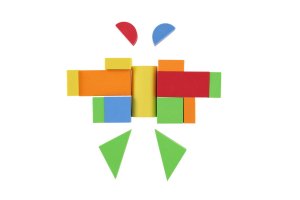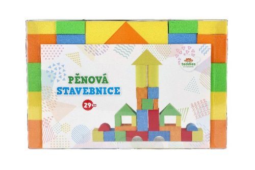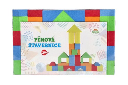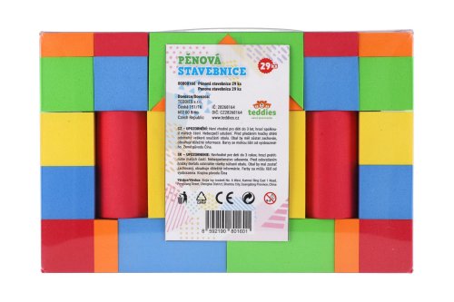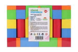 Kostky jsou vyrobeny z měkkého, gumového a netoxického materiálu. Pomocí kostek se u dětí rozvíjí jemná motorika rukou a díky barevnému provedení kostek i zrak. Kostky jsou baleny v plastové tašce. Sada obsahuje 29 ks. Rozměry balení 24,5 x 16 x 4 cm. Vhodné pro děti od 3 let.