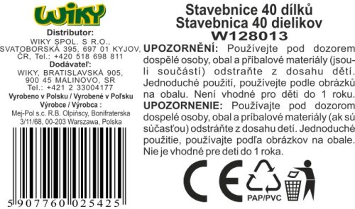 Balení obsahuje 40 dílů, ze kterých děti mohou postavit, co jen je napadne. Záleží na fantazii. Stavebnice je vyrobena z plastu a svou barevností děti rozhodně zaujme.