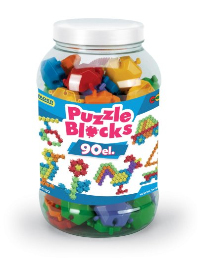 Montážní systém usnadňuje vzájemné propojování prvků, díky čemuž mohou děti vytvářet originální stavby, vozidla, zvířátka, čísla, písmena, geometrické obrazce a mnoho dalších zajímavých tvarů. Bloky lze umístit vertikálně i horizontálně. Puzzle jsou baleny v plastové dóze. Rozměry balení 15 x 25 cm. Vhodné pro děti od 12 měsíců.