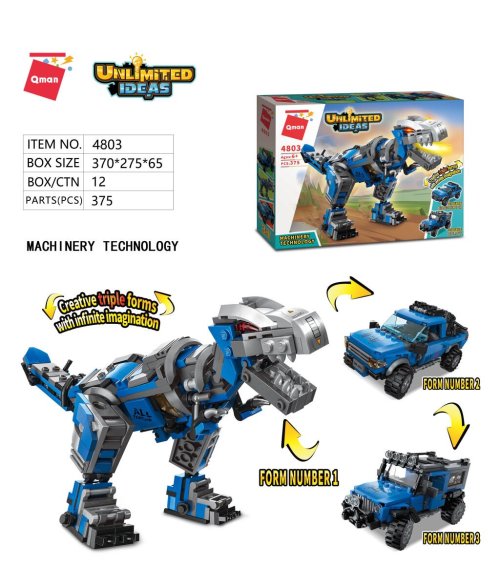 Síla spojení vědy a technologie, to je mechanický tyranosaurus. Z této stavebnice můžete kromě T-Rexe postavit 2 rozdílná autíčka. Vyrobeno z netoxického ABS plastu, v balení 375 dílků.