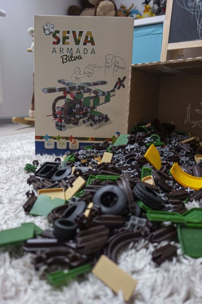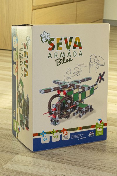 Postavte si vojenské auto, obrněný transportér, vrtulník, nebo cokoli jiného – stavebnice obsahuje 958 dílků a fantazii se meze nekladou. Všechny námi vyráběné hračky jsou pravidelně testovány renomovanou zkušebnou a splňují veškeré požadavky bezpočnosti a nezávadnosti podle normy EN71. Její věková hranice není nijak omezená. I když jako výrobce doporučujeme stavebnici pro děti od 4 let, máme zjištěno, že za dozoru rodičů se s ní vyhrají i 3 leté děti. Tato ČESKÁ stavebnice SEVA neobsahuje nebezpečné ftaláty, není tedy důvod, proč by měla chybět v některém dětském pokojíčku. Všechny stavebnice SEVA jsou navíc navzájem kompatibilní, proto je můžete neustále rozšiřovat. Rozměry balení 27 x 38 x 18 cm. Vhodné pro děti od 6 let.