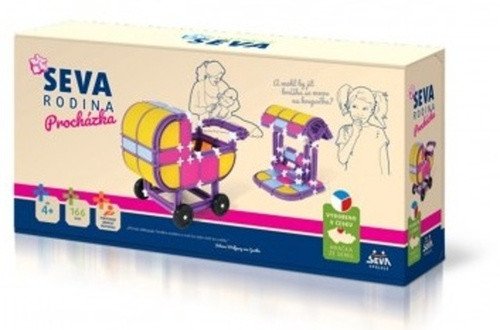 Stavebnice SEVA RODINA - Procházka obsahuje 166 dílků. Postavte si kočárek, houpačku i mnoho jiného. Vyhovuje evropské normě EN71 o bezpečnosti hraček a její kvalita je pravidelně kontrolována. Všechny stavebnice SEVA jsou navzájem kompatibilní a jejich možnosti se dají stále rozšiřovat. Stavebnice je kreativní, dětem rozvíjí mysl i manuální zručnost a podporuje jemnou motoriku. Rozměry balení 32 x 17 x 8 cm. Vhodné pro děti od 4 let.