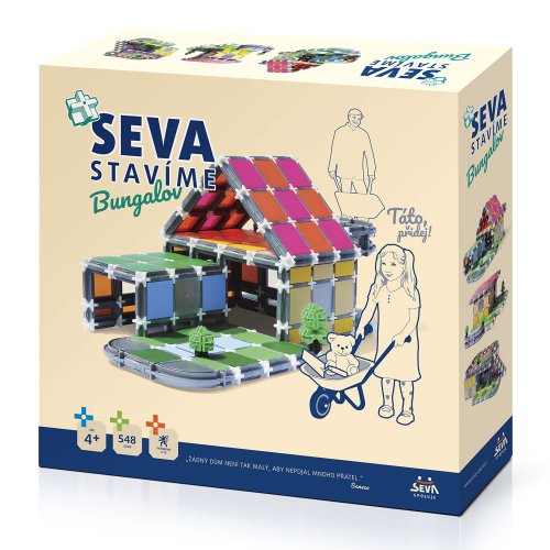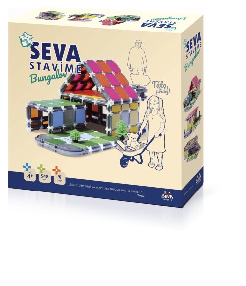 "Mami, tati! S bráchou jsme pro nás postavili nový dům!“ Se stavebnicí SEVA STAVÍME Bungalov postavíte mnoho variací na téma náš dům, náš hrad.... krásné je, že každý chceme bydlet jinak. Už tušíte, jak vy? Balení obsahuje 548 dílků. Rozměr krabice: 35 x 33 x 7 cm Vhodné od 4 let