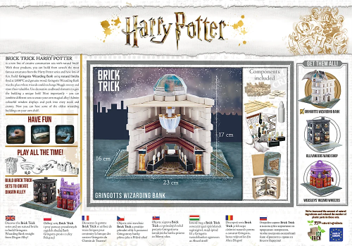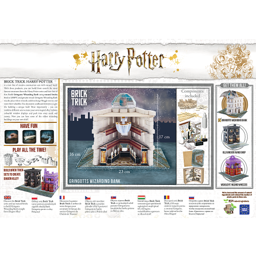 Nová řada kreativních stavebnic ze skutečných cihel! V této sérii objevíte skutečnou magii a budete moci od základů postavit nejslavnější prostory ze série Harry Potter. Budovy lze kombinovat a postavit tak celý Bradavický hrad. Přidejte trávu, skutečný mech a kameny a dodejte Bradavické čarodějnické škole jedinečnou atmosféru.