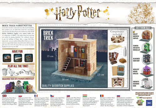 Nová řada kreativních stavebnic ze skutečných cihel! V této sérii objevíte skutečnou magii a budete moci od základů postavit nejslavnější prostory ze série Harry Potter. Budovy lze kombinovat a postavit tak celý Bradavický hrad. Přidejte trávu, skutečný mech a kameny a dodejte Bradavické čarodějnické škole jedinečnou atmosféru.