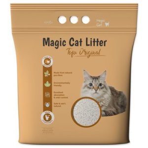 Je zcela bez chemických přísad, netoxické a s úžasnou schopností absorpce vlhkosti. Hrudky můžete snadno spláchnout do toalety. S Magic Litter Tofu zajistíte své kočce čisté a zdravé prostředí, ve kterém se bude cítit skvěle. Jedno balení vydrží při používání jednou kočkou až 30 dnů.