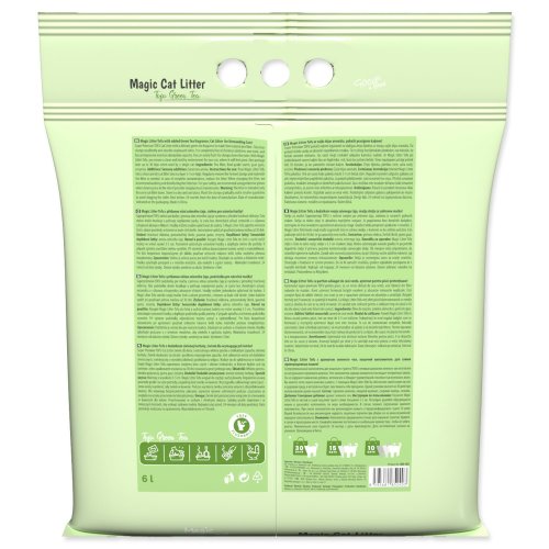 Je zcela bez chemických přísad, netoxické a s úžasnou schopností absorpce vlhkosti. Hrudky můžete snadno spláchnout do toalety. S Magic Litter Tofu zajistíte své kočce čisté a zdravé prostředí, ve kterém se bude cítit skvěle. Jedno balení vydrží při používání jednou kočkou až 30 dnů.