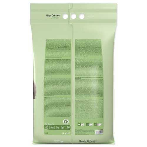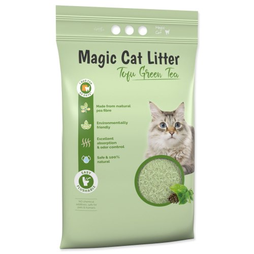 Je zcela bez chemických přísad, netoxické a s úžasnou schopností absorpce vlhkosti. Hrudky můžete snadno spláchnout do toalety. S Magic Litter Tofu zajistíte své kočce čisté a zdravé prostředí, ve kterém se bude cítit skvěle. Jedno balení vydrží při používání jednou kočkou až 30 dnů.