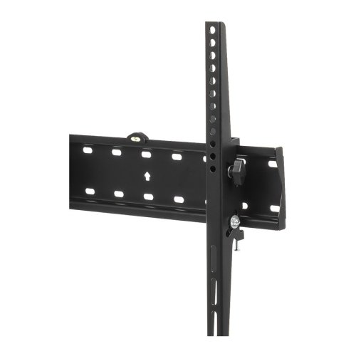 Celý držák je vyroben z pevné a odolné oceli, obsahuje také vodováhu pro vyrovnaní, pojistku proti vysazení a je vyveden v černé barvě.