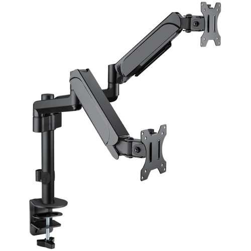 Uchycení: na hranu/do otvoru Pracovní zatížení: 2x 1 - 9 kg VESA 75x75 VESA 100x100 Kabelový management Barva: Černá Materiál: Ocel "Pojistka" proti vysazení