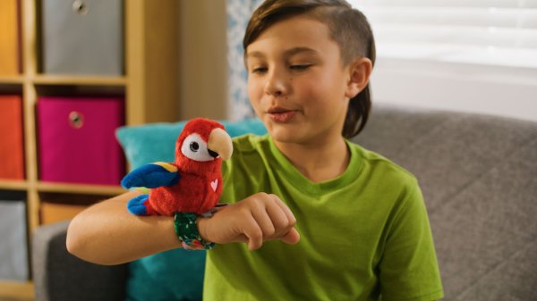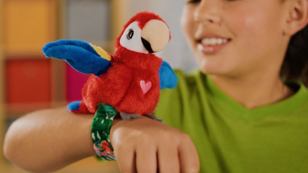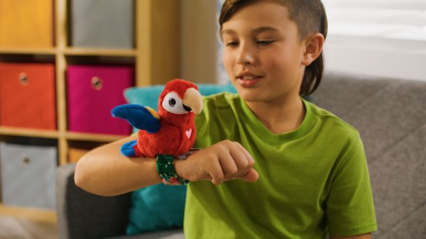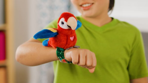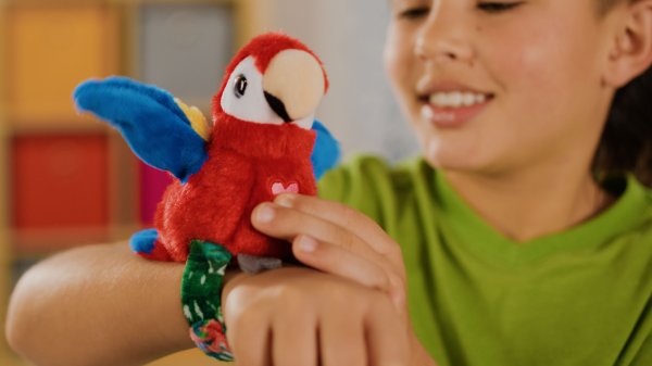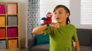 Ptáčka si můžeš připnout na ruku a užít si s ním spoustu zábavy. Opakuje, zpívá ptáčí písničku a mává křídly.